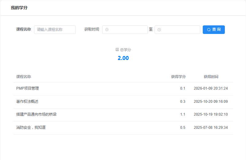 学时学分管理系统支持多维度学分查询,包括按员工、按课程、按部门、按时间等查询方式。系统实时查询学分,支持学分明细查询、学分汇总统计等功能,让学分管理更精准、更高效。